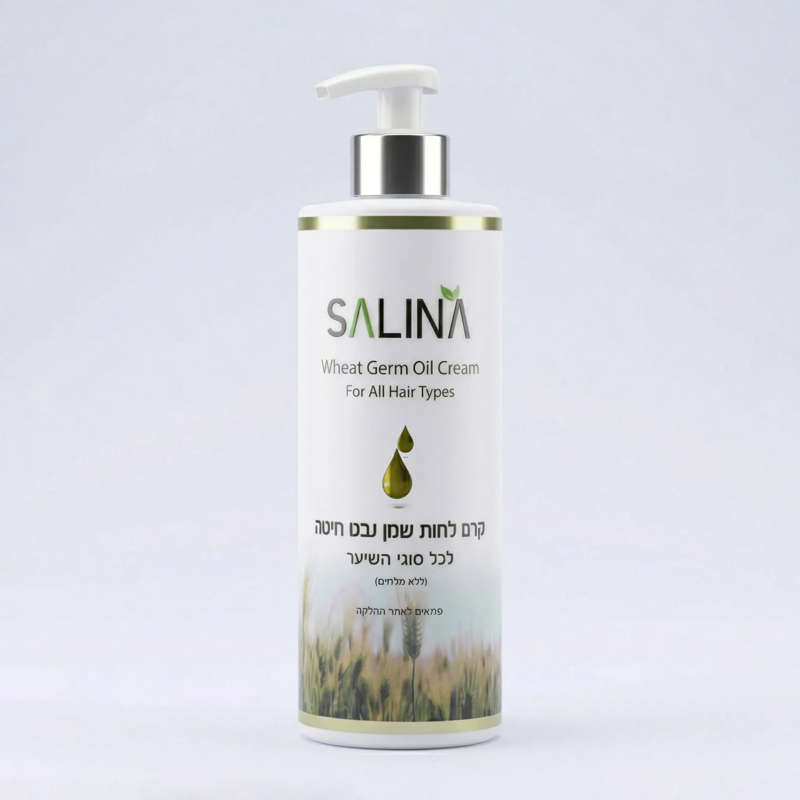 קרם שמן נבט חיטה מסדרת Wheat Germ של Salina מעניק ריכוך עמוק, הזנה ושליטה בפריז לשיער יבש או רגיל.